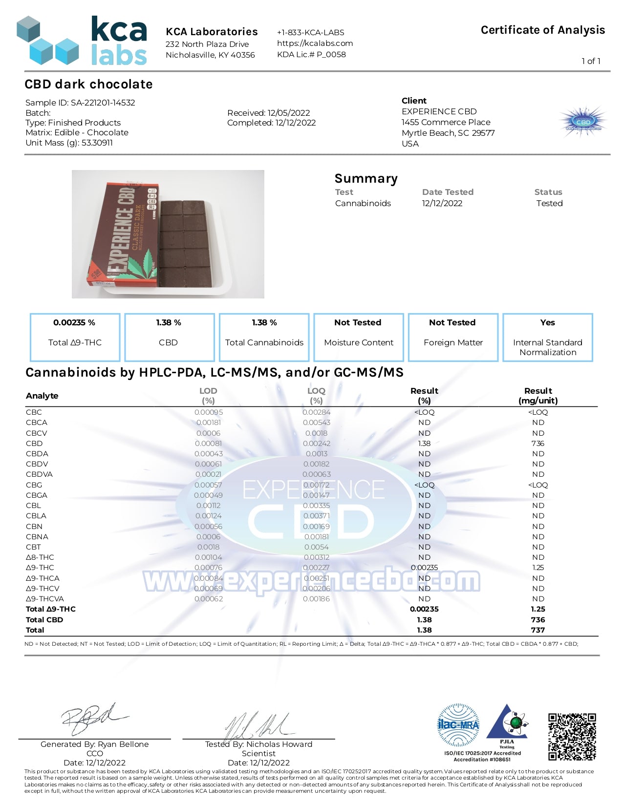 Recommended Use: Depending on your body type and prior use with CBD, we recommend starting with 1 chocolate square/serving and let the chocolate melt in your mouth. If you are a first-time CBD user, try cutting chocolate square in half and see how your body reacts to CBD before increasing your servings.